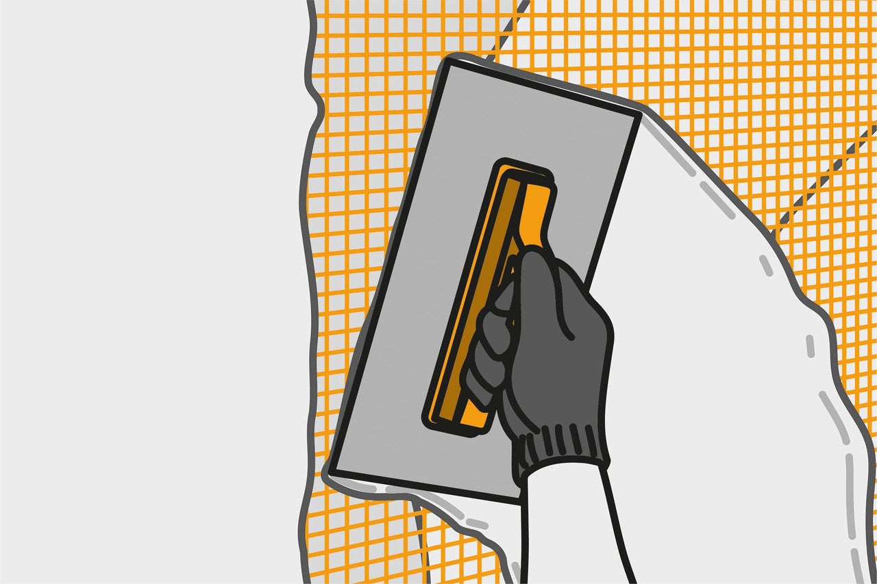 Afin que le mur reste résistant aux chocs même après l'isolation, applique une couche de mortier d'armature. Place ensuite un treillis d'armature dans ce mortier et intègre-le dans le mortier d'armature.