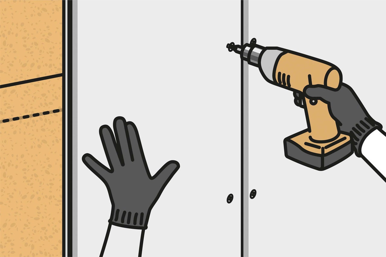 Les plaques de plâtre se posent par-dessus l'isolation et le pare-vapeur et masquent l'isolant et l'ossature. Fixe-les tous les 25 cm à l'aide de vis pour construction rapide.