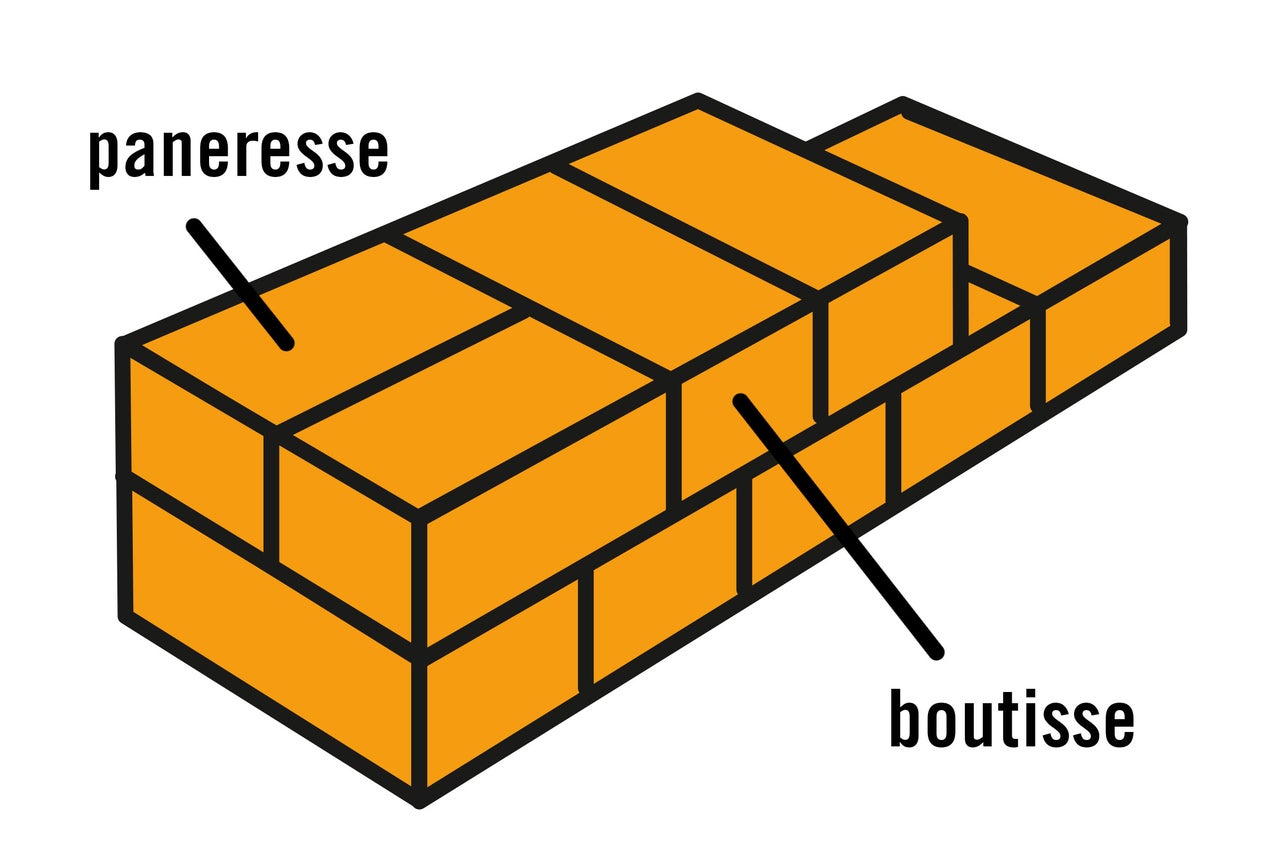 Pour un mur de 36,5 cm, toutes les couches se composent de paneresses et de boutisses. De couche à couche, on trouve côté visible alternativement les paneresses et les boutisses.
