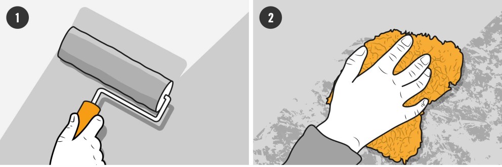 1. Applique l'enduit BÉTON avec un rouleau à poils courts en couche suffisamment épaisse.