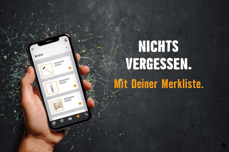 Sammeln bis alles komplett ist. Auf Deiner Merkliste kannst Du alle Produkte sammeln, die Du für Dein Projekt benötigst. In Deinem Kundenkonto abspeichern und später weitersuchen? Oder direkt über die Merkliste bestellen oder reservieren und in Deinem Markt abholen? Aktuelle Verfügbarkeit checken und informieren, in welchem Gang Deine Artikel im Markt liegen? Alles kein Problem. So hast Du Deinen virtuellen Einkaufszettel jederzeit dabei.
